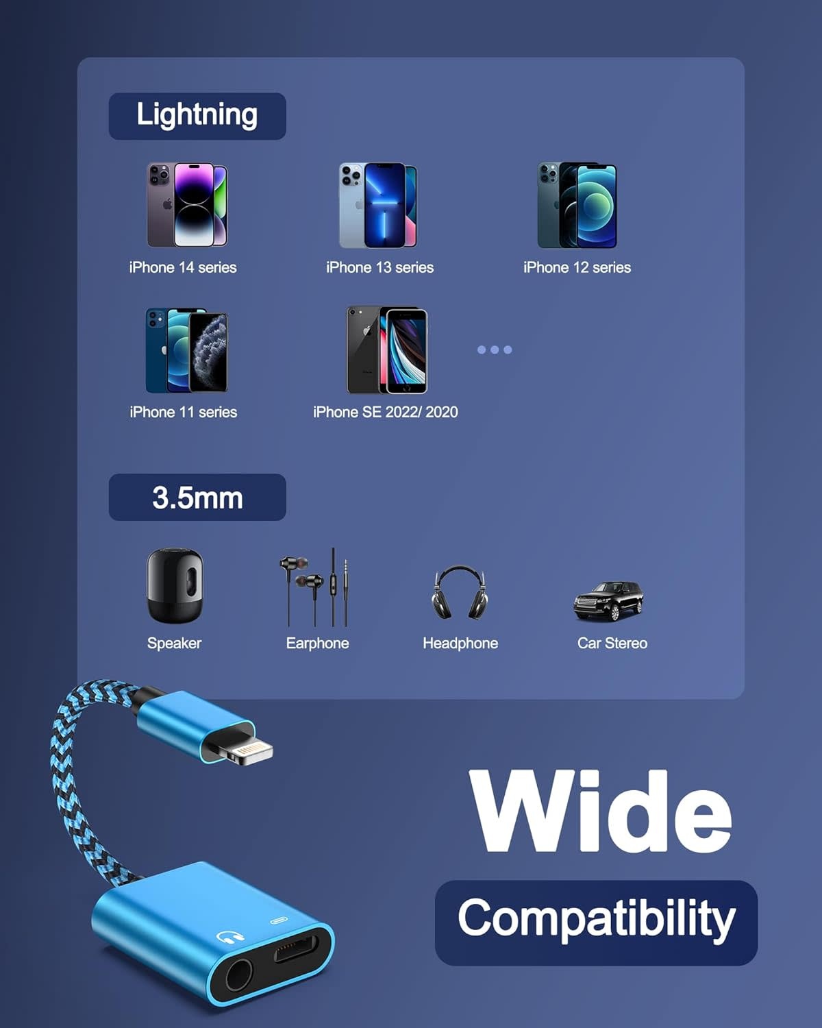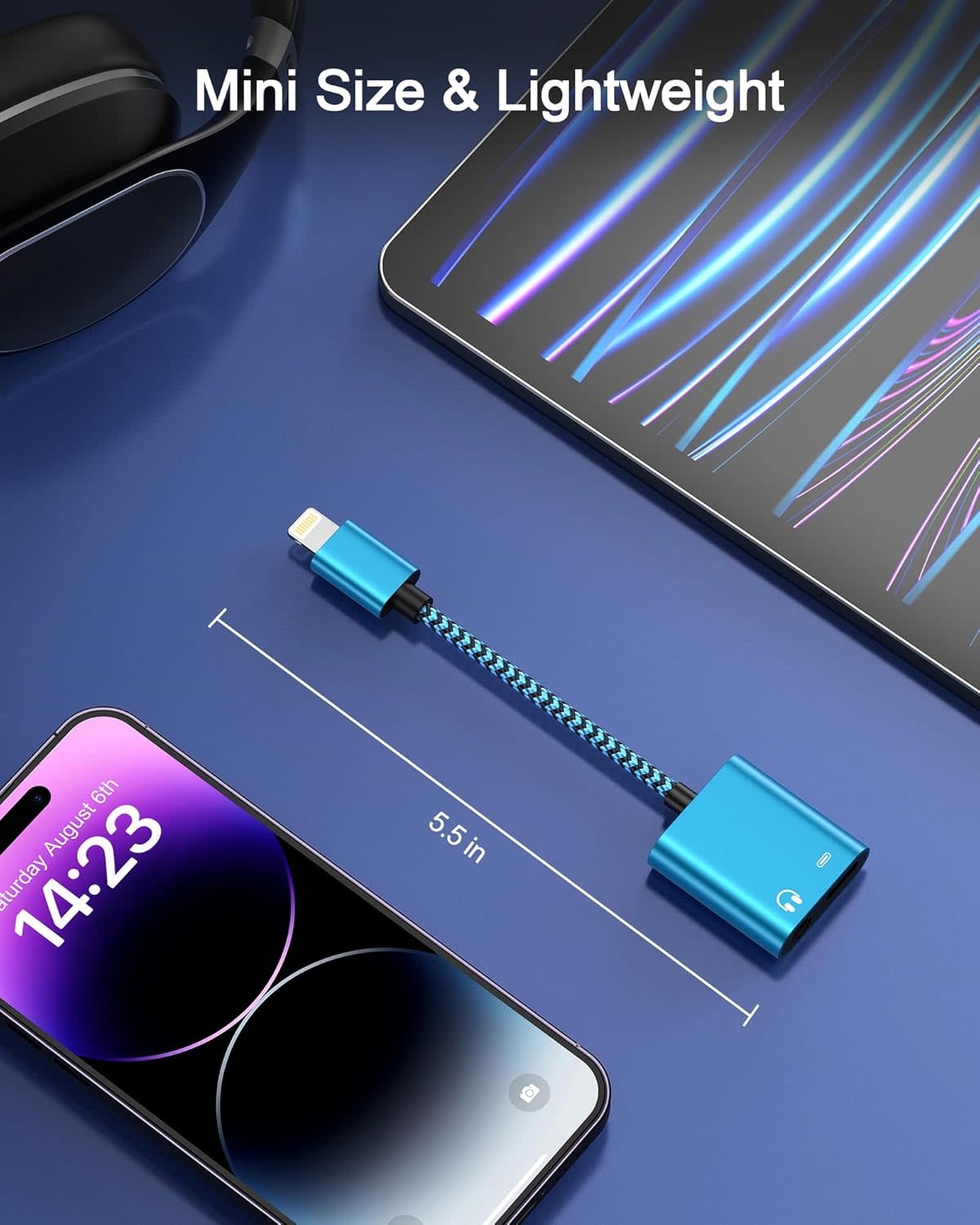 LIGHT-AUX-CHARGE - iPhone Headphone Adapter with Charge 2-in-1 Lightning to 3.5mm Female Aux Audio Jack Dual Converter Mfi Certified Apple Dongle Splitter + Charger Adaptor for iPhone 14 Pro Max 13 12 11 XR XS iPad Mini