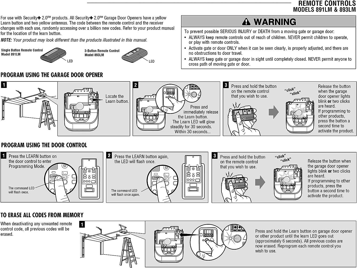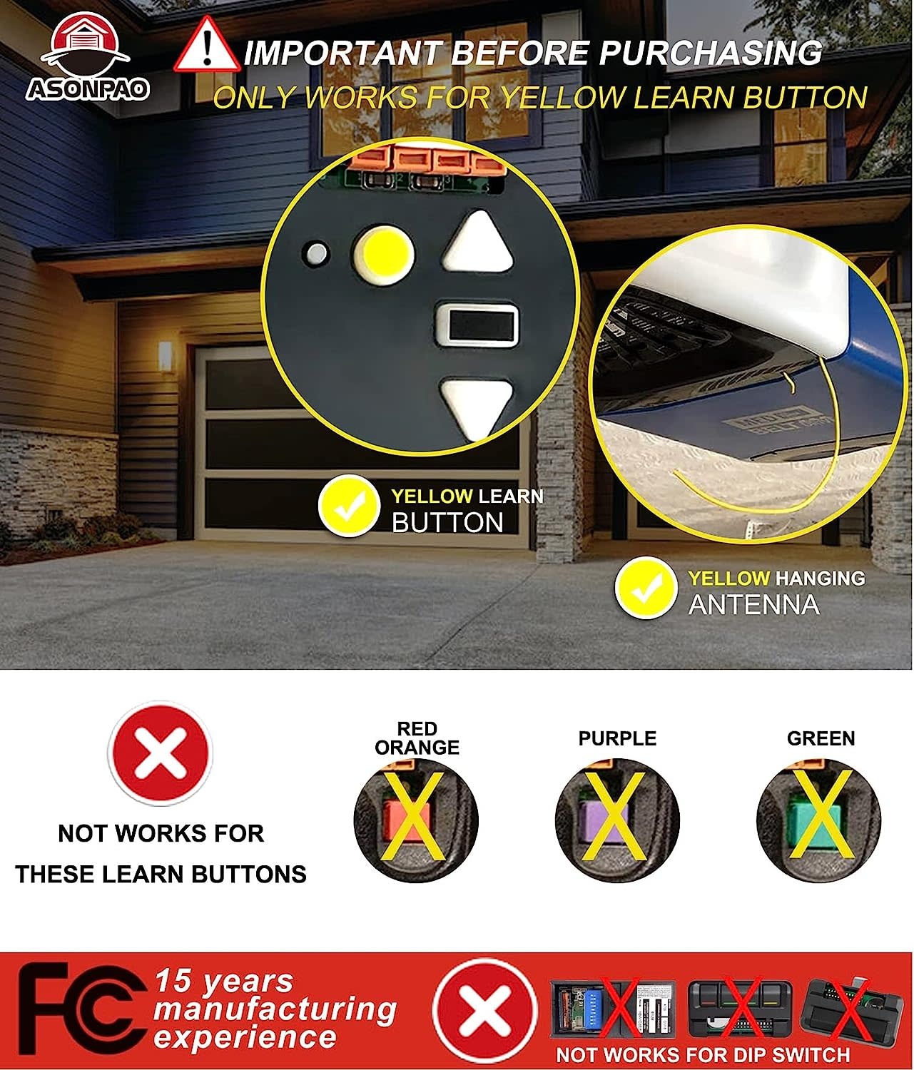 893LM-953ESTD - ASONPAO Replacement for 950ESTD, 953ESTD, 891LM, 893LM, 41A7633, Remote only for a Yellow Learn Button of Liftmaster Chamberlain Sears Craftsman Garage Door Openers Security+ 2.0