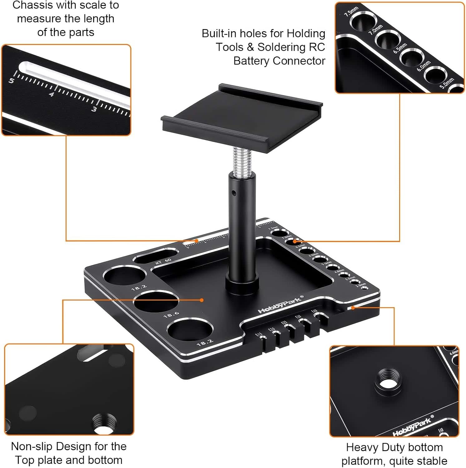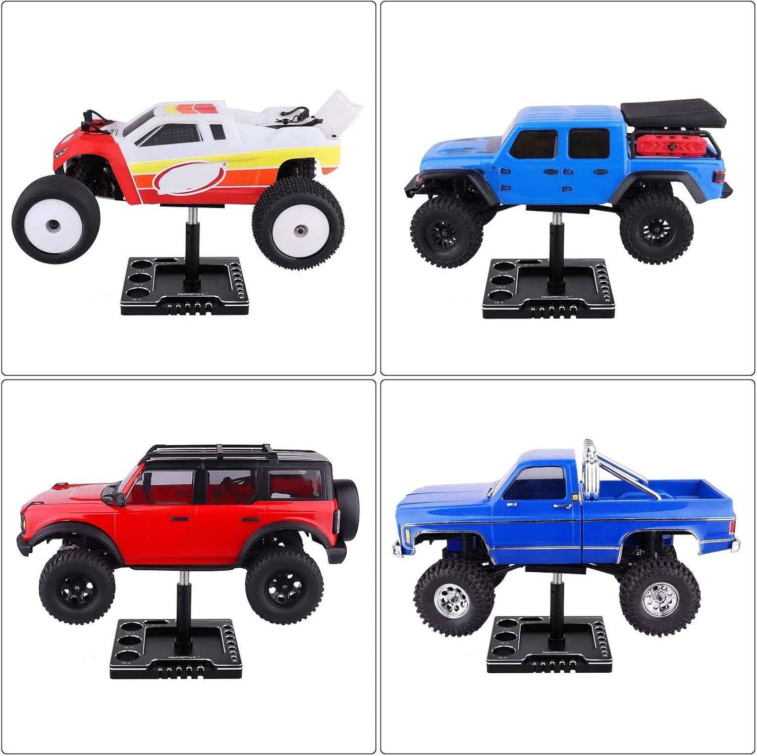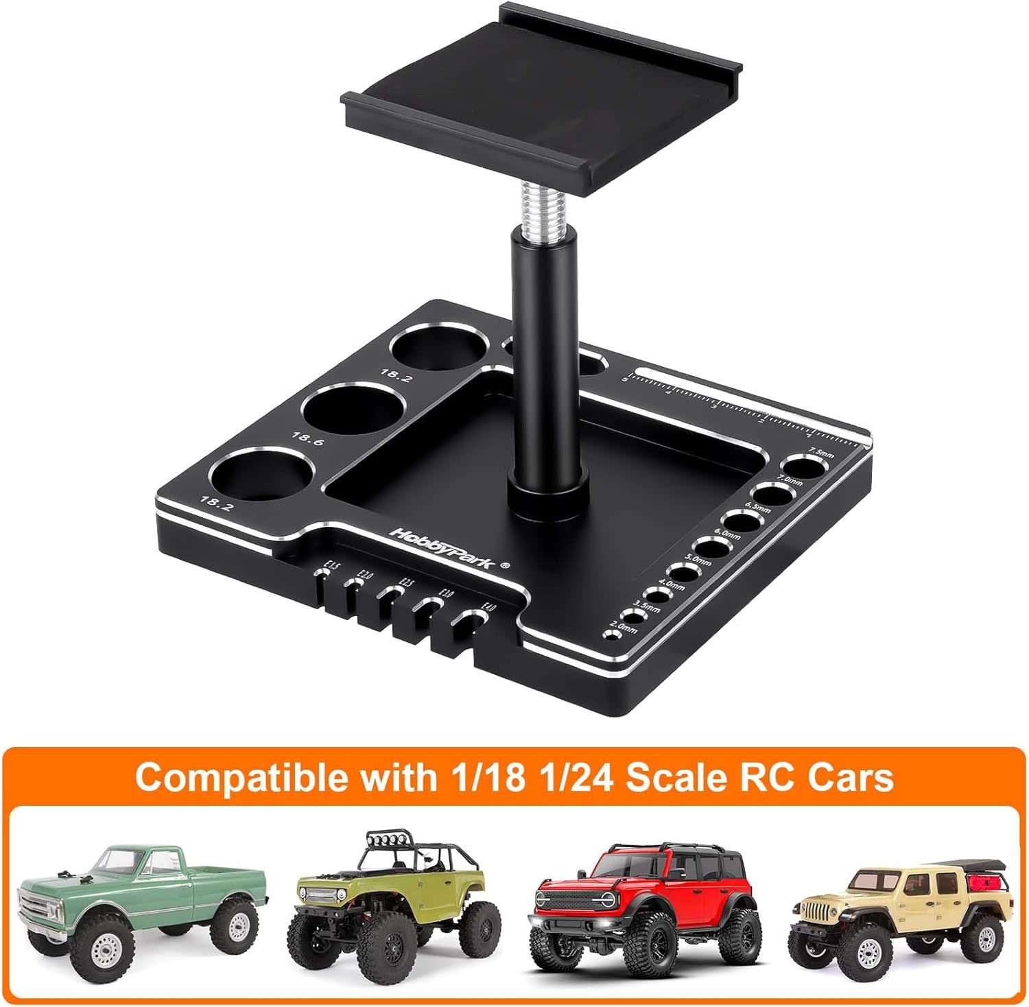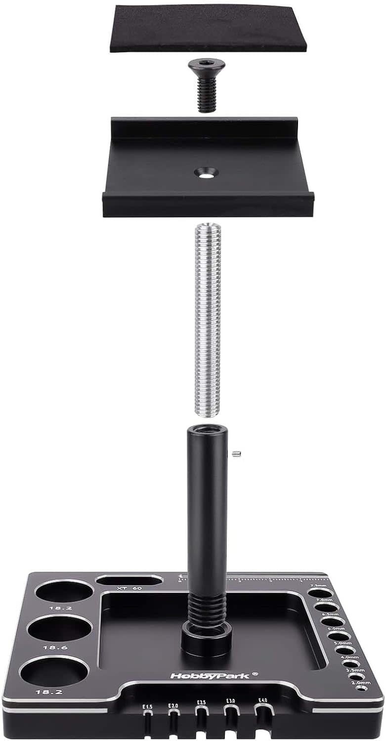 STAND-1/18/24-BLK/SLVR - Hobbypark 1/18 1/24 RC Crawler Work Stand 360 Degree Rotation Lift Or Lower RC Car Repair Workstation for TRX4M TRX4MT Axial SCX24 AX24 FCX24 Tools (Unassembled) (Black-Silver) - RadioShack of Bozeman