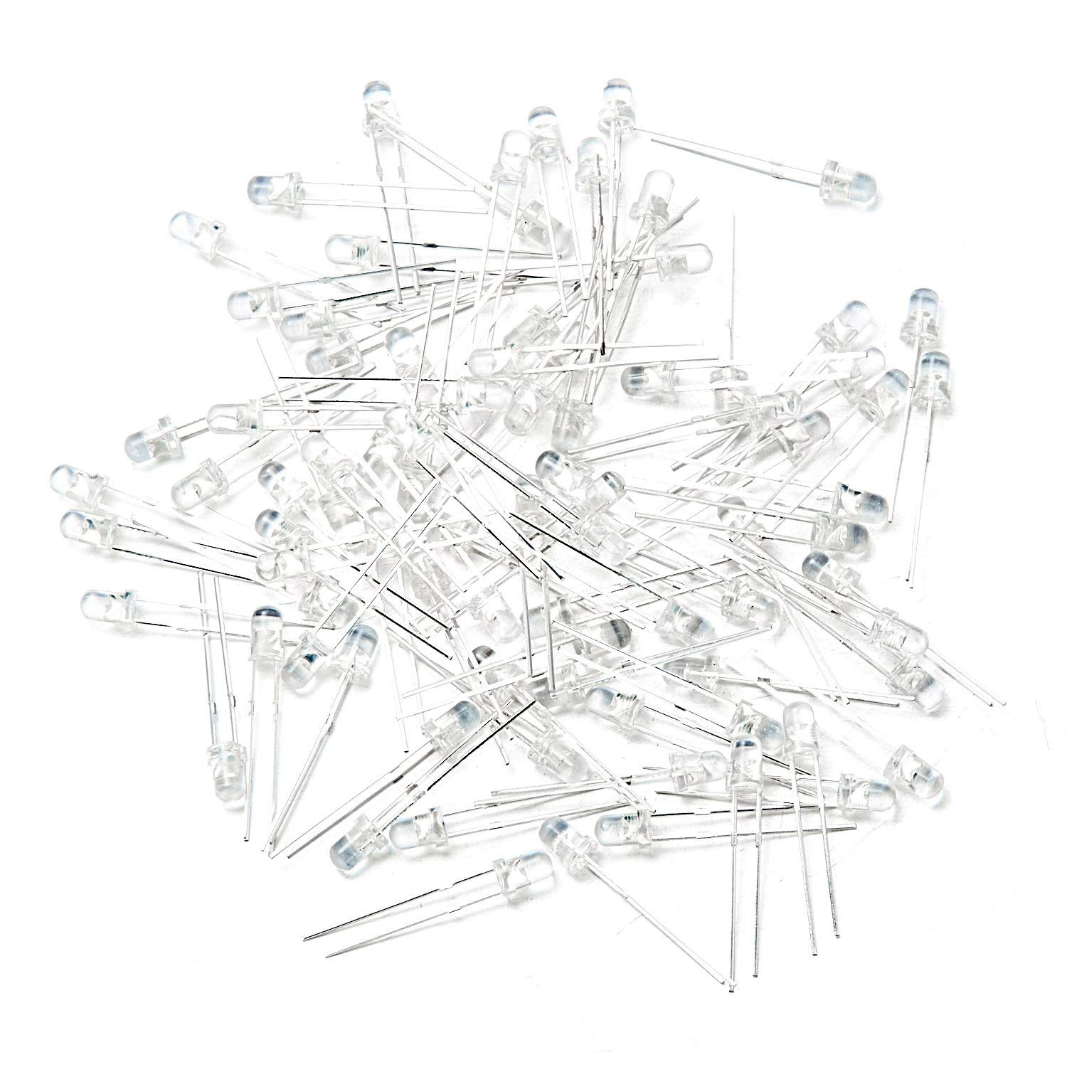 100F3T-YT-WH-BL - CHANZON 100 pcs 3mm Blue LED Diode Lights (Clear Round Transparent DC 3V 20mA) Bright Lighting Bulb Lamps Electronics Components Indicator Light Emitting Diodes - RadioShack of Bozeman
