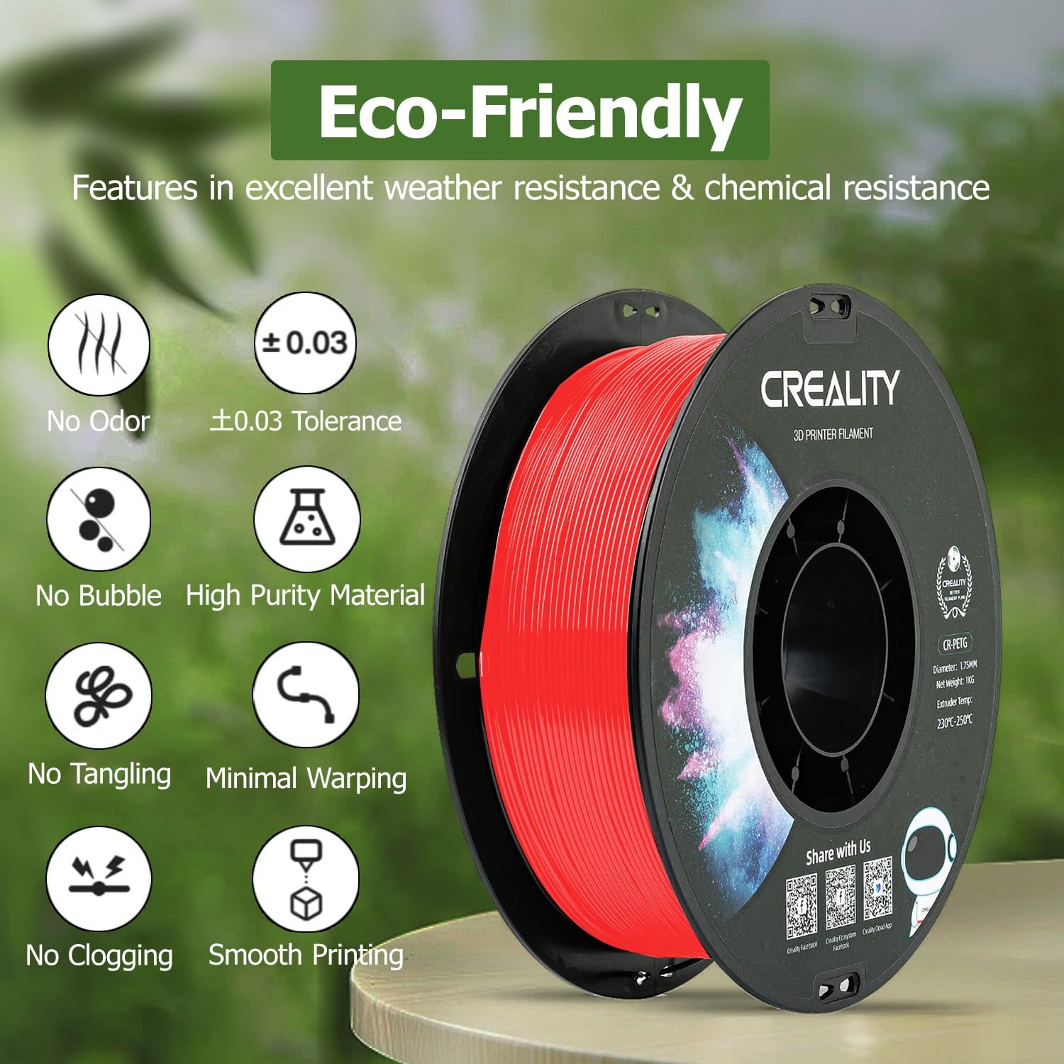 CREALITY-PETEG-RED - CREALITY PETG Filament 1.75mm 3D Printer Filament, 1kg (2.2lb) Neatly Wound Spool, Dimensional Accuracy ±0.03mm, Excellent Toughness, Fits for Most FDM 3D Printers, Red PETG - RadioShack of Bozeman