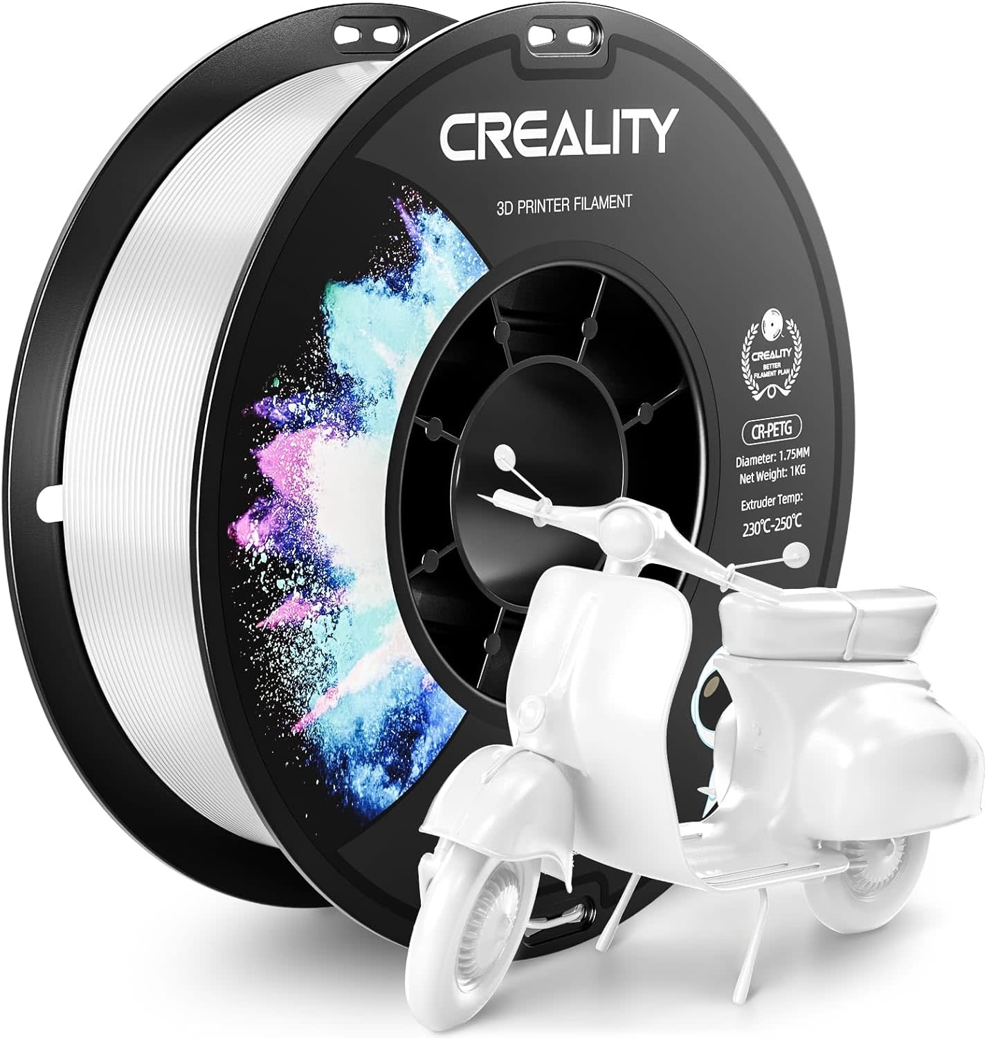 CREALITY-PETEG-WHITE - CREALITY PETG Filament 1.75mm 3D Printer Filament, 1kg (2.2lb) Neatly Wound Spool, Dimensional Accuracy ±0.03mm, Excellent Toughness, Fits for Most FDM 3D Printers, White PETG - RadioShack of Bozeman