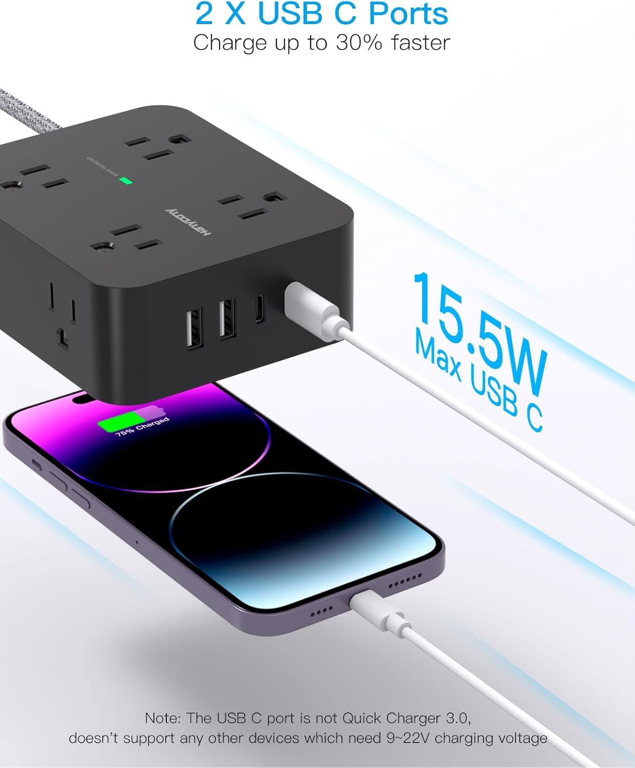 HN8U5WTB - HANYCONY 900 Joules Power Strip Surge Protector, HANYCONY 8 Outlets with 4 USB Charging Ports(2 USB C), 3 Side Outlet Extender with 5 Ft Extension Cord, Flat Plug, Wall Mount, Desk Charging Station for Home Office ETL