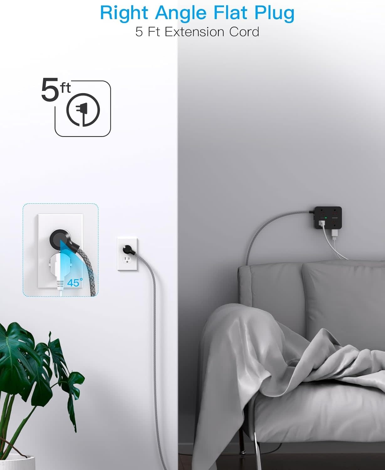 HN8U5WTB - HANYCONY Extension Cord 6 Ft, 1080 Joules Black Surge Protector Power Strip Long Cord 8 Outlets 4 USB Ports(2 USB C), Wall Mount, 1080J Surge Protection, Desk Charging Station for for Home Office Dorm Room Essentials