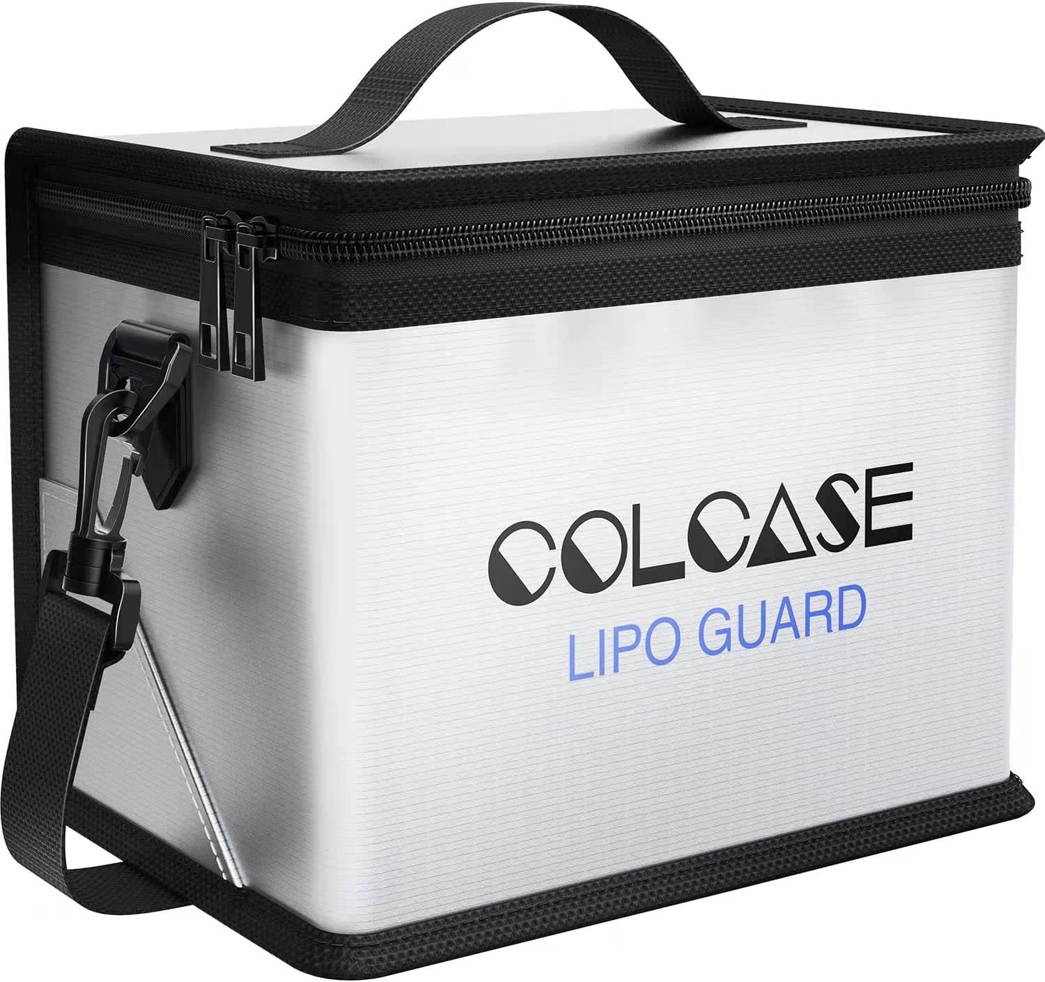 COLCASE-LIPO-BAG - COLCASE Fireproof Explosionproof Lipo Safe Bag for Lipo Battery Storage and Charging, Large Space Highly Sturdy Double Zipper Lipo Battery Guard (8.46x5.7x6.5 in)