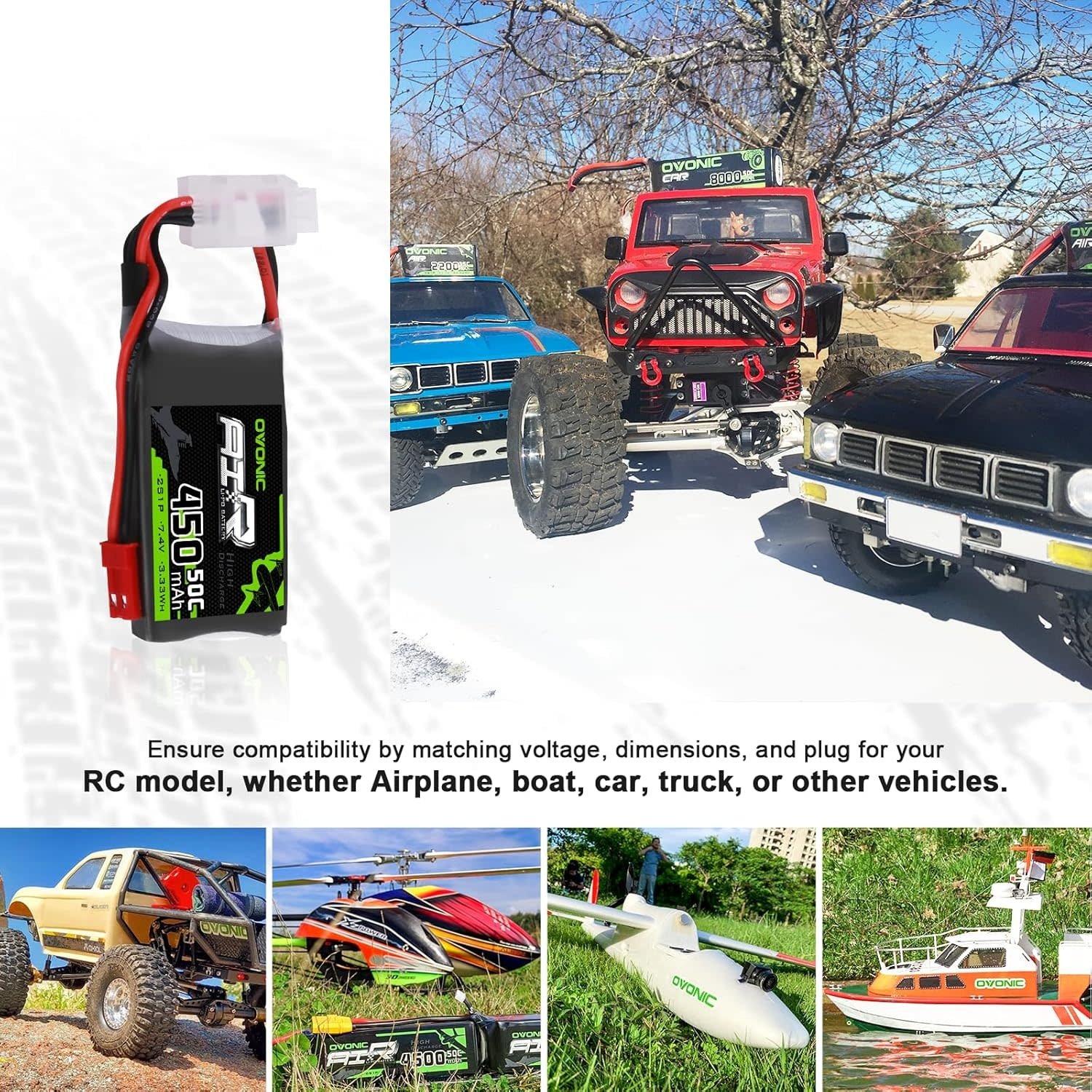 OVONIC-7.4V-2S-450MAH-JST - OVONIC 2S Lipo Battery 50C 450mAh 7.4V Lipo Battery with JST Connector for RC Airplane Helicopter Quadcopter FPV Racing Drone - RadioShack of Bozeman
