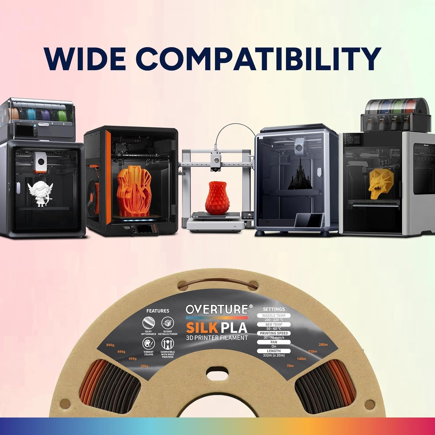OVPLA-SLK-TGR-EYE - OVERTURE Silk PLA Rainbow Filament 1.75mm, Bi-Color Shiny PLA Finish, Smooth & Glossy, 1kg Spool (2.2lbs), Ideal for Cosplay Jewelry & Home Decor (Silk Tiger Eye) - RadioShack of Bozeman