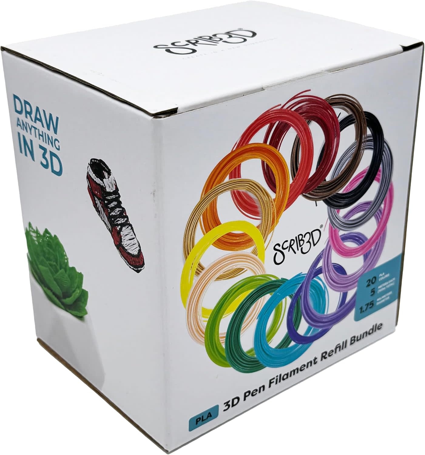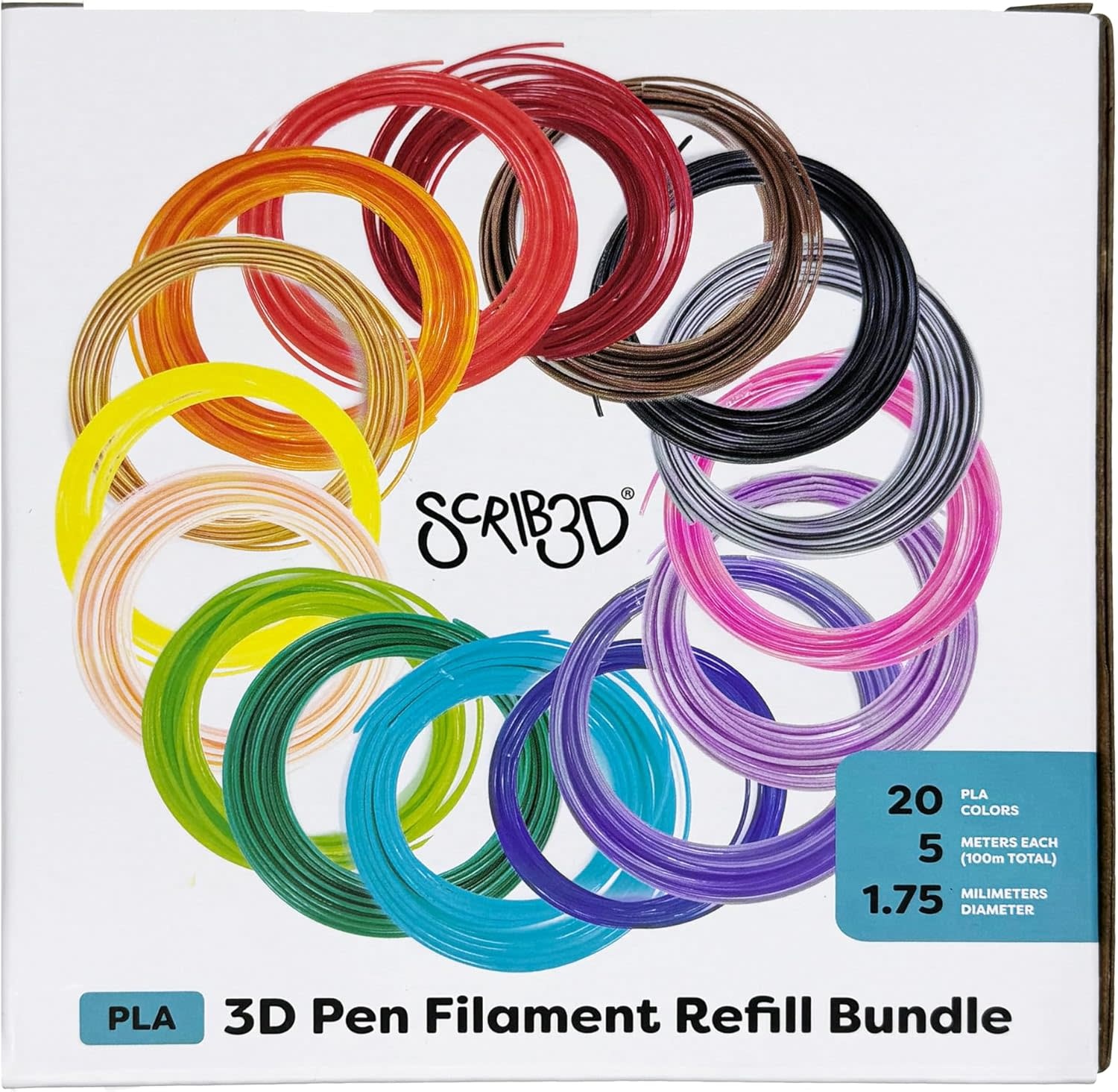 SCRIB3D-20 - SCRIB3D Pen Filament Refills, 20 Colors, 320 Feet, 1.75mm PLA, Works with SCRIB3D, PIKA3D, MYNT3D and Most Other 3D Printing Pens - RadioShack of Bozeman