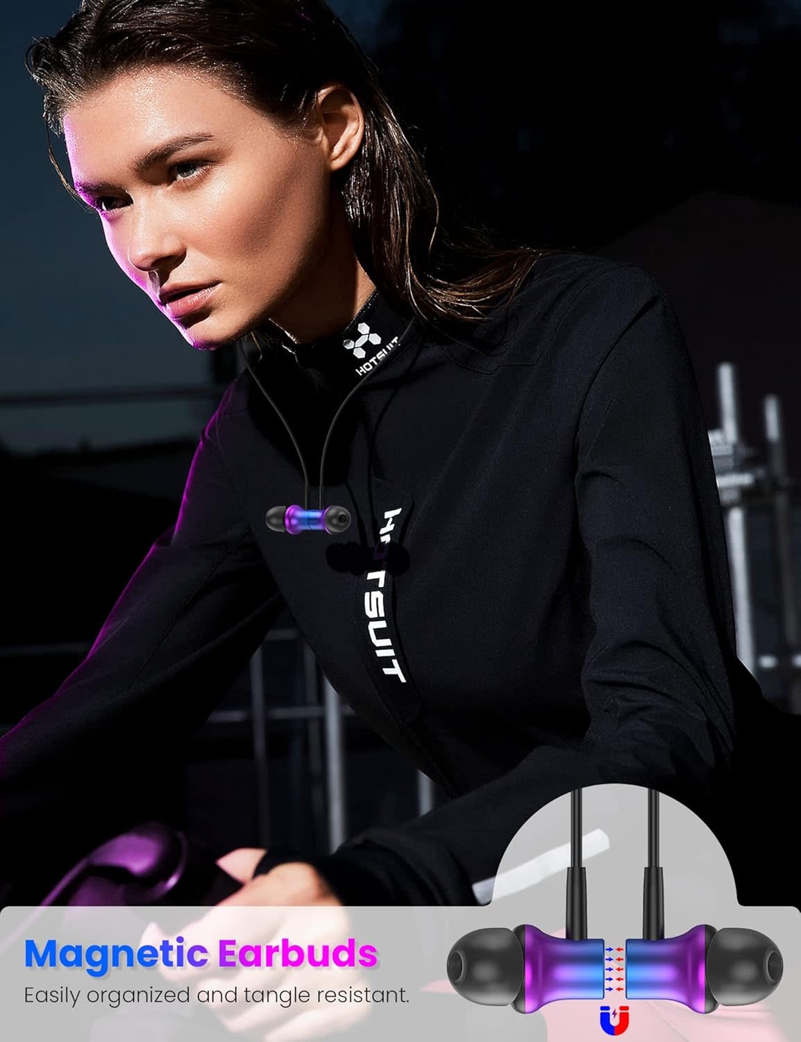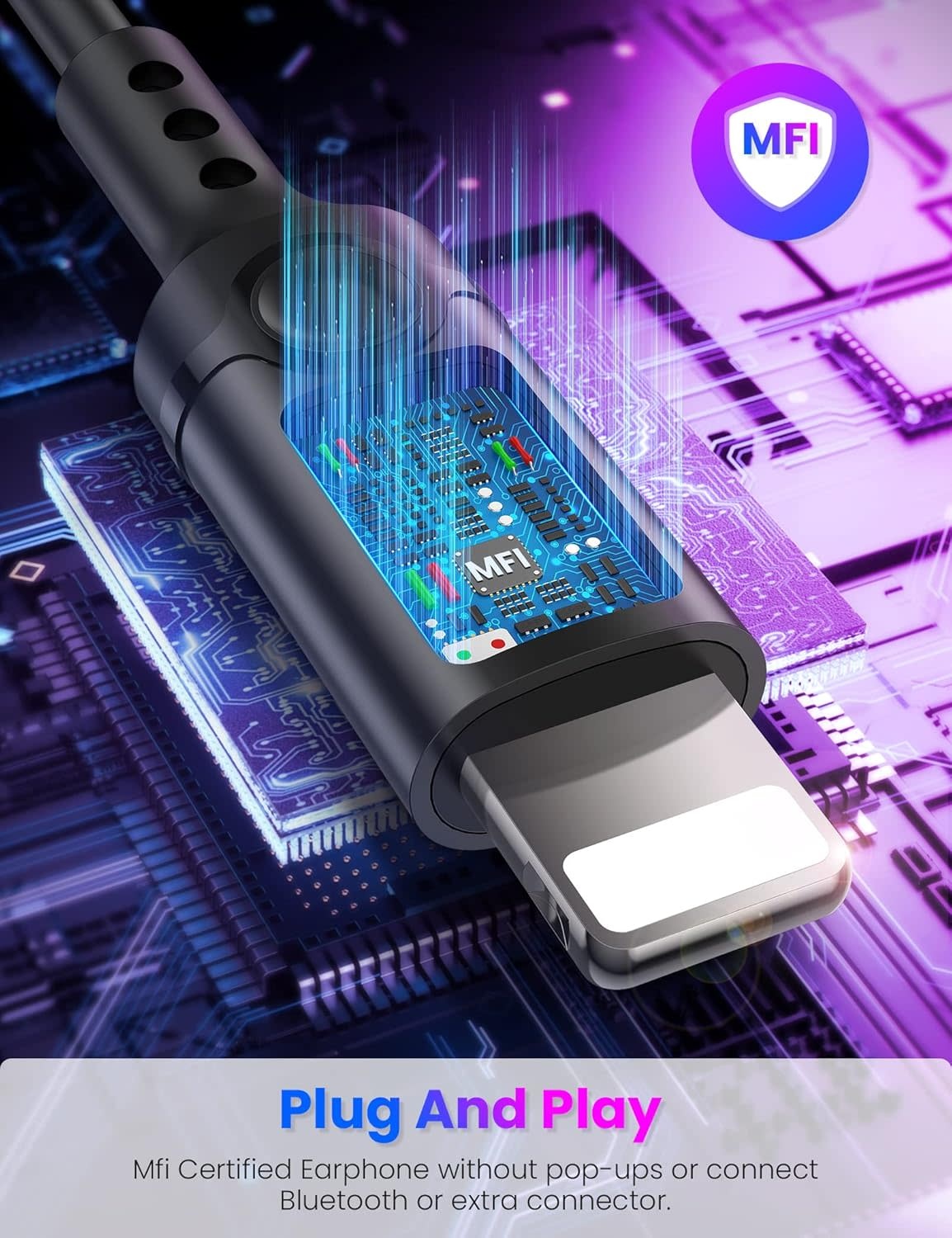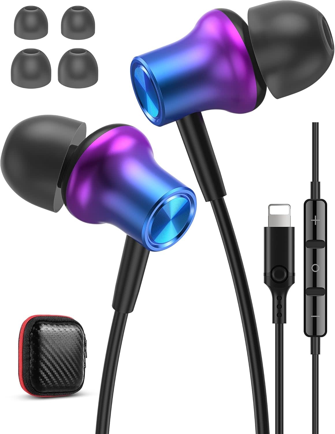LME577 - iMangoo Design for Apple MFi-Certified Wired Earbuds for Lightning Headphones Magnetic Wire Earphones Corded with Microphone Volume Control for iPhone 14 Plus 13 Pro Max 12 Mini 11 10 XS XR Purple