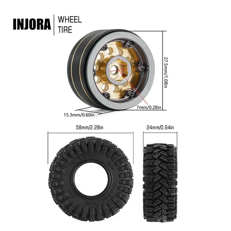 YQW-1008GL-1017 - INJORA 1.0" 58*24mm -2.65mm Offset Brass Wheel Set for Micro Crawlers, Gray - RadioShack of Bozeman
