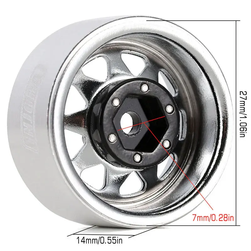 YQW-1004SR - INJORA 1.0" Negative Offset 3.78mm Deep Dish Stamped Steel Wheels for 1/18 1/24 RC Crawlers (4) Silver - RadioShack of Bozeman