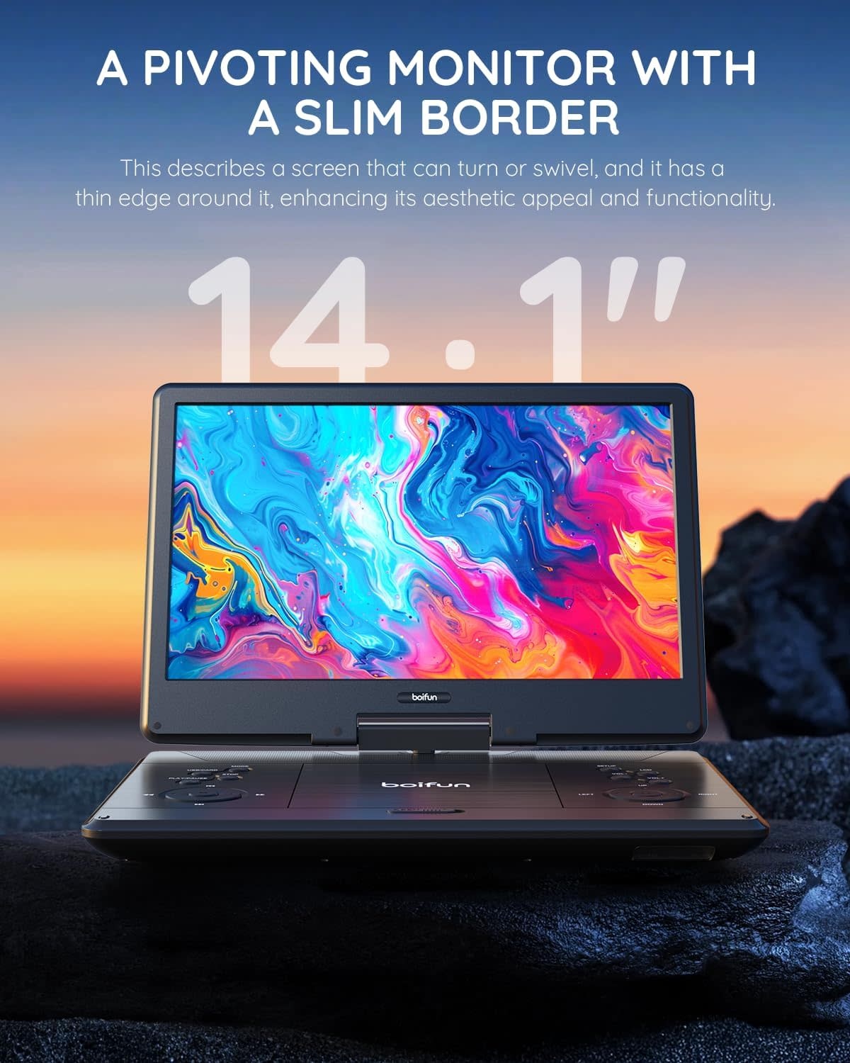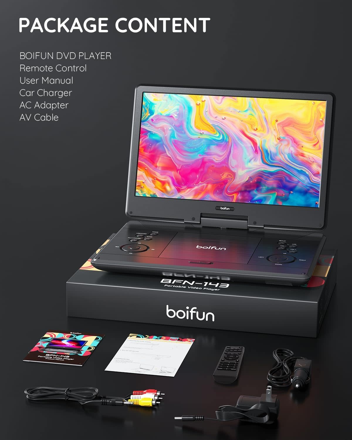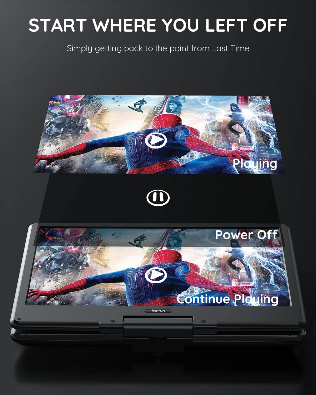 BOIFUNBFN-143 - BOIFUN 15.7" Portable DVD Player with 14.1" Large HD Screen, HDMI Input,5 Hours Rechargeable Battery, Support Sync TV, USB, SD Card and Multiple Disc Formats, Dual Speaker, Rich Matte Black