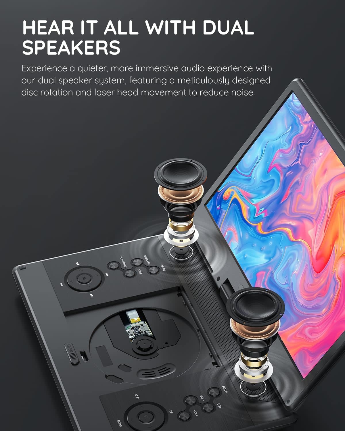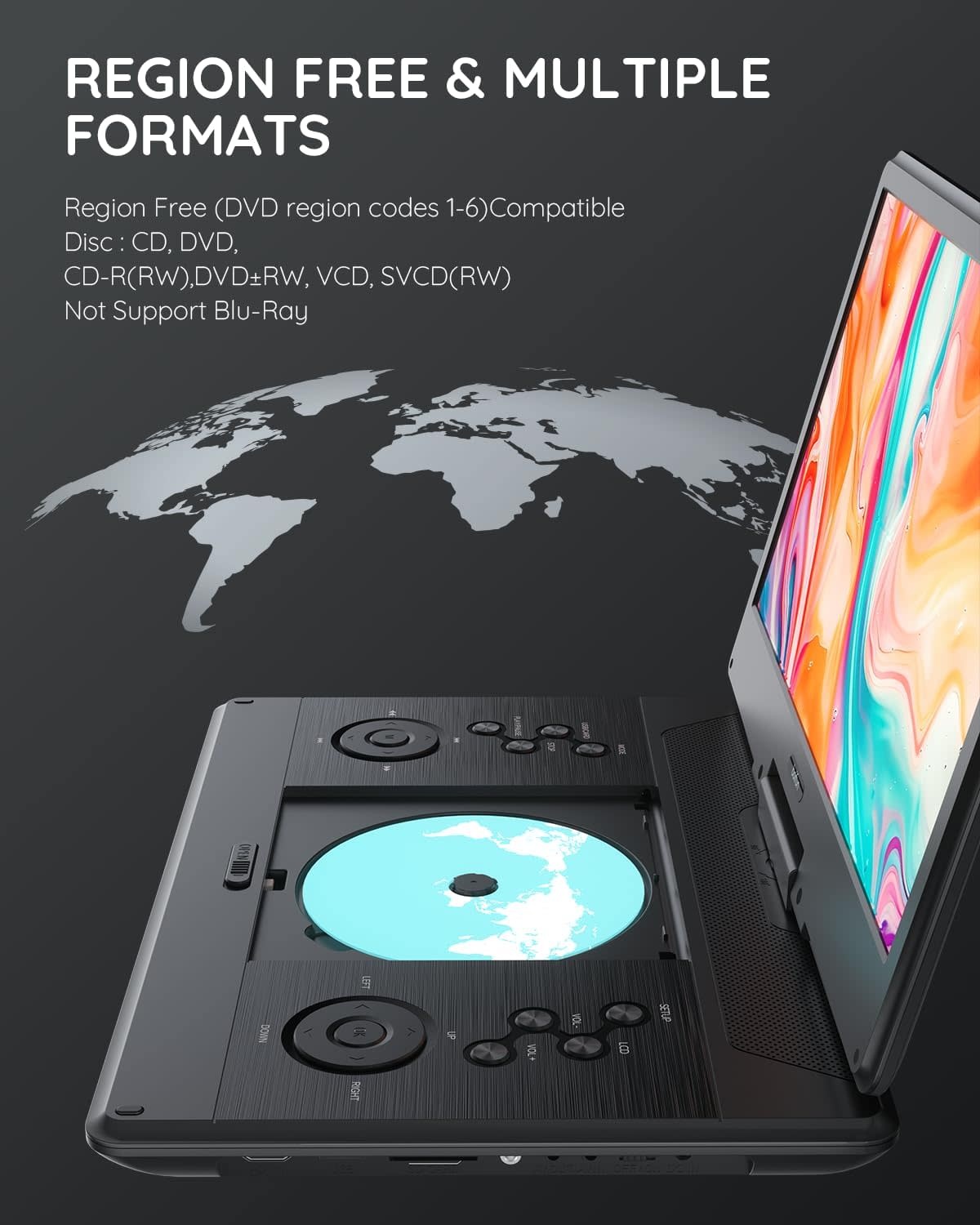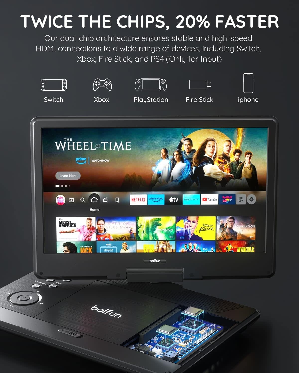 BOIFUNBFN-143 - BOIFUN 15.7" Portable DVD Player with 14.1" Large HD Screen, HDMI Input,5 Hours Rechargeable Battery, Support Sync TV, USB, SD Card and Multiple Disc Formats, Dual Speaker, Rich Matte Black