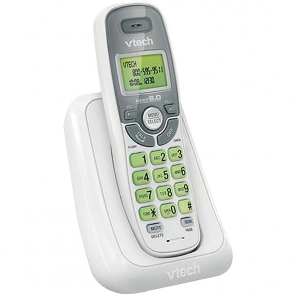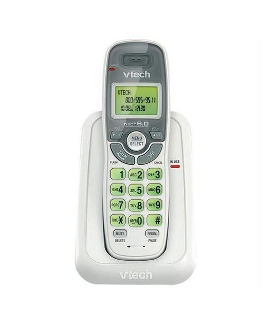 Keep it simple at home with the VTech CS6114 Cordless Phone System. DECT 6.0 digital technology delivers superior sound quality and range, while ensuring wireless networks and other electronic devices don't interfere with conversations. With the phone's digital security, your calls are digitized and encrypted, making it nearly impossible for someone to eavesdrop. A caller ID/call waiting feature stores up to 30 calls, while text messages on the handset alert you to new voicemails (provided you subscribe to voicemail service through your phone company). Last number redial allows you to quickly redial the last 5 numbers called. The keypad and LCD screen illuminate, allowing for easier viewing in dim light. The phone's exterior consists of a gloss white plastic and silver color scheme.