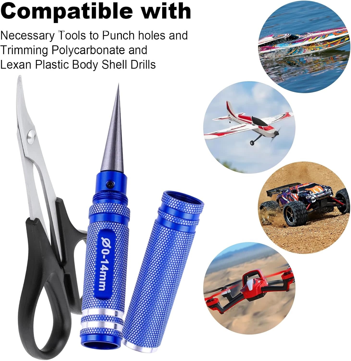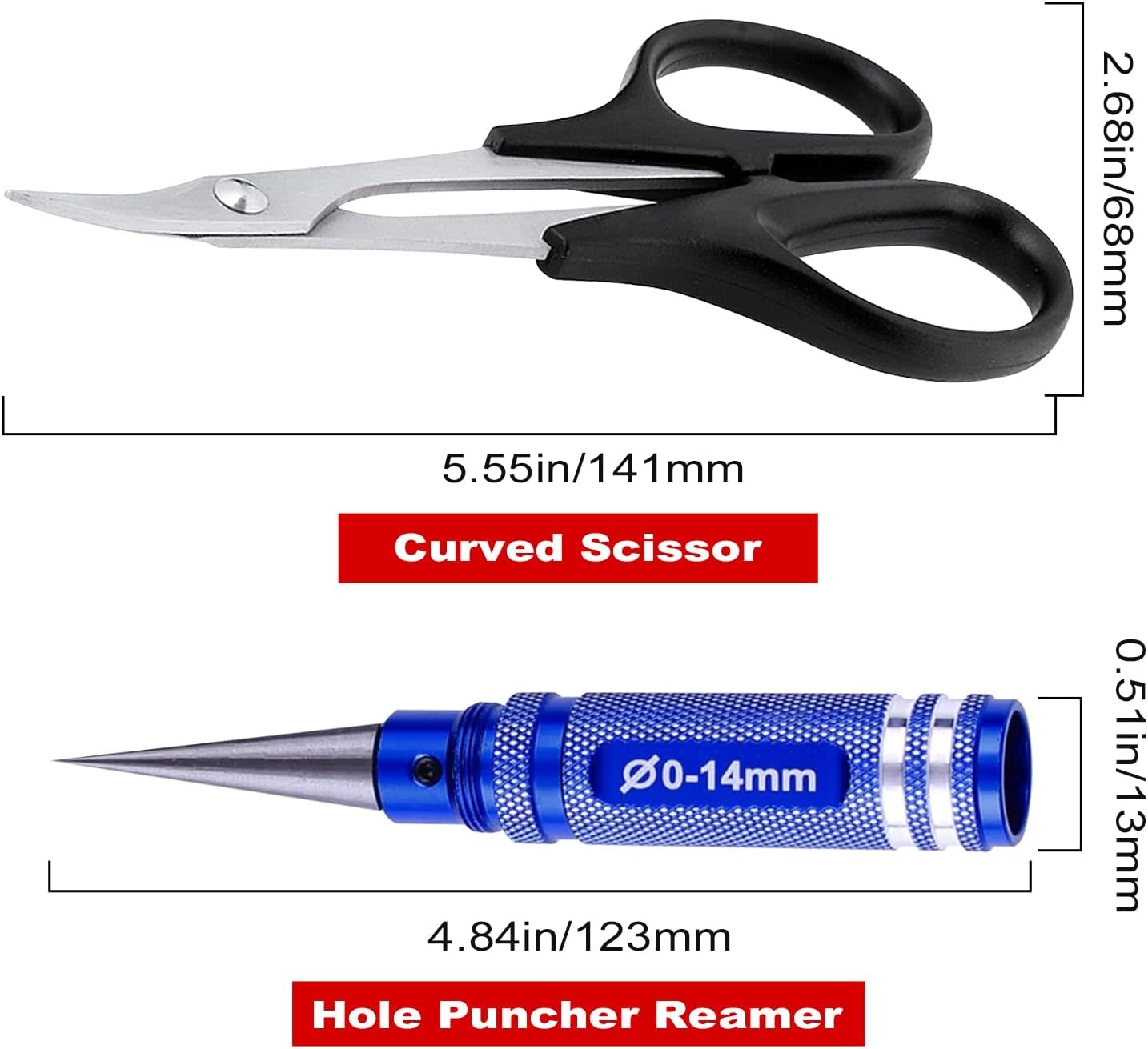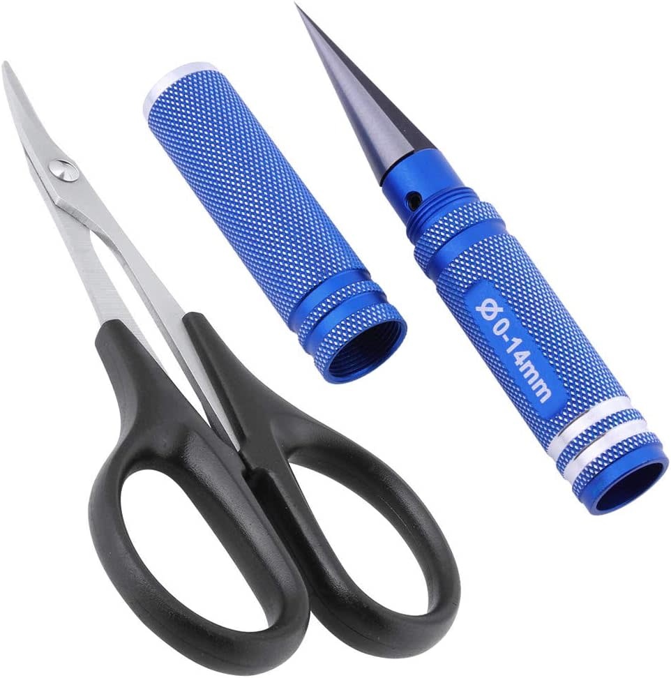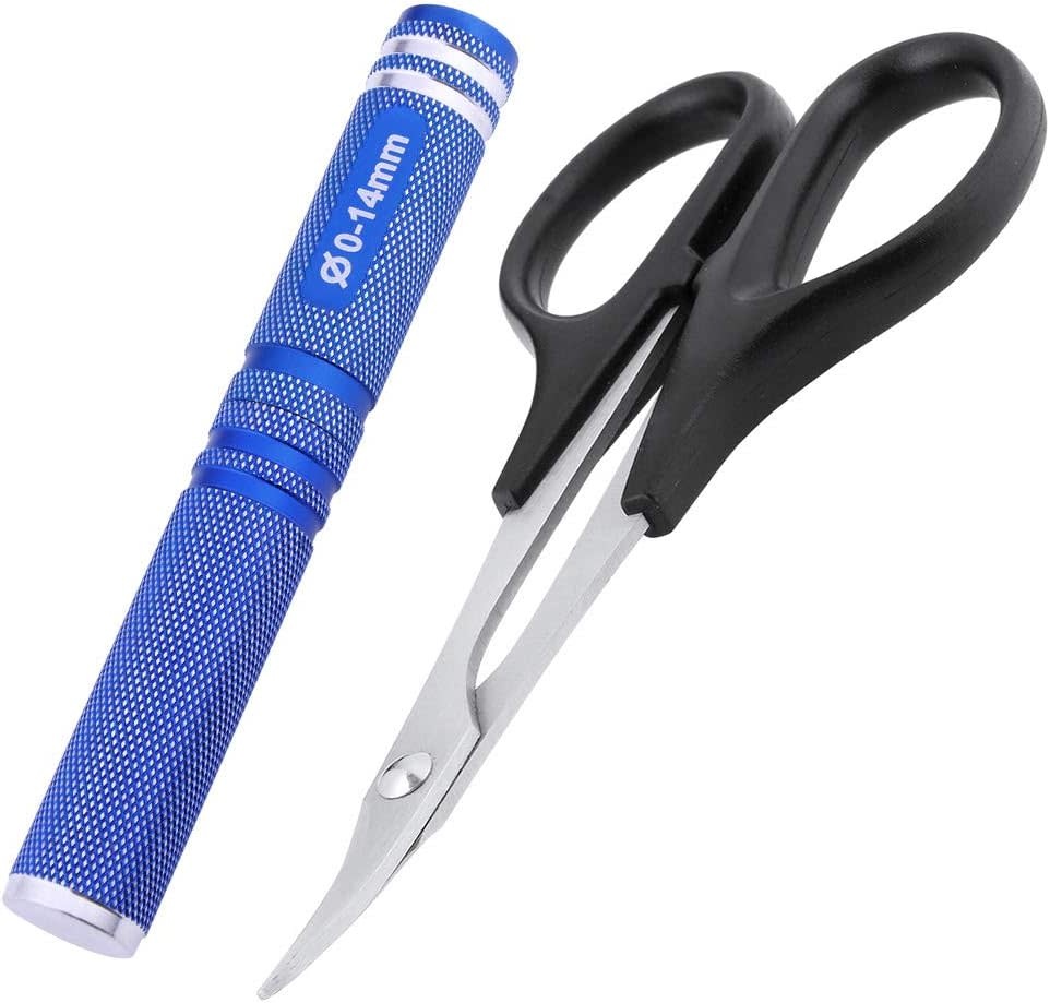 Body Reamer 0-14mm Hole Puncher w/Sleeve & Curved Scissors Set for RC Car Bodyshell Hobby Tools