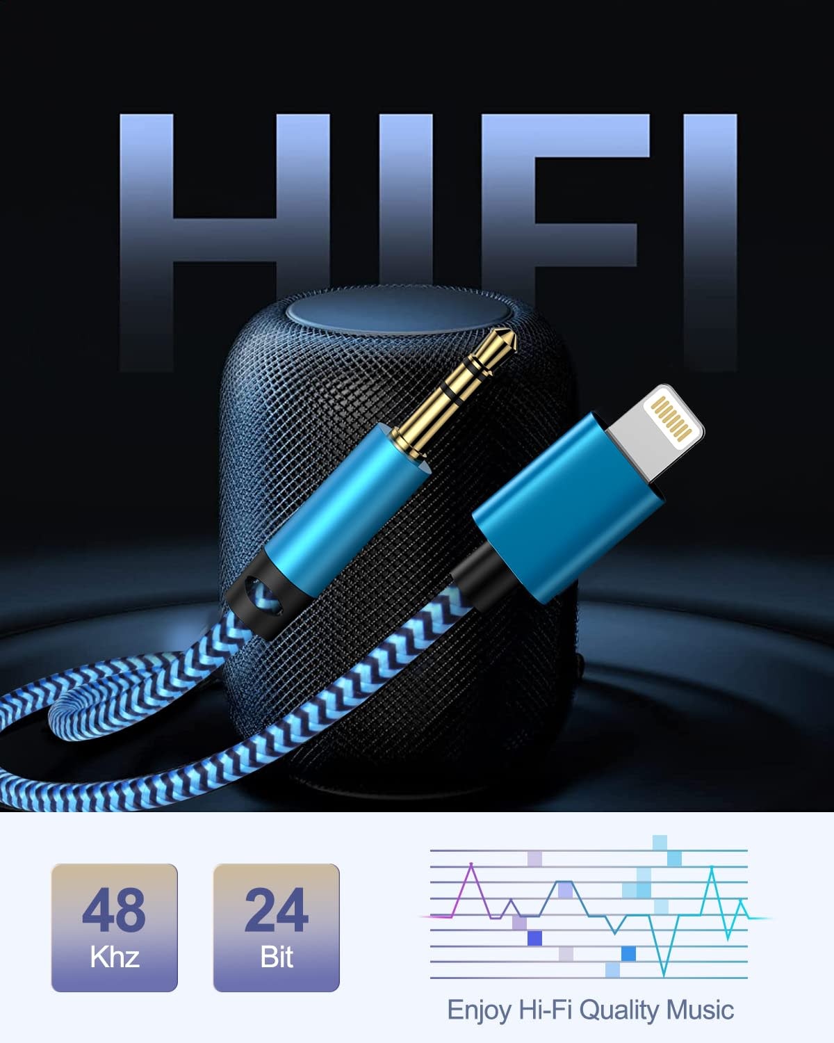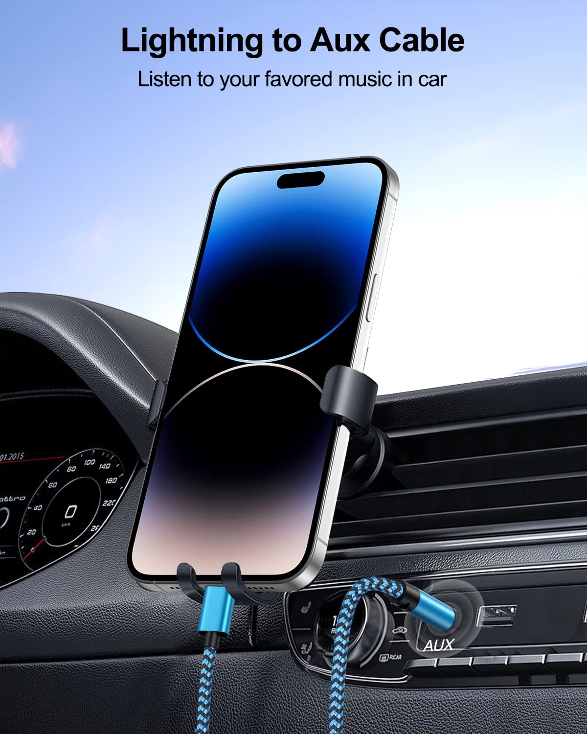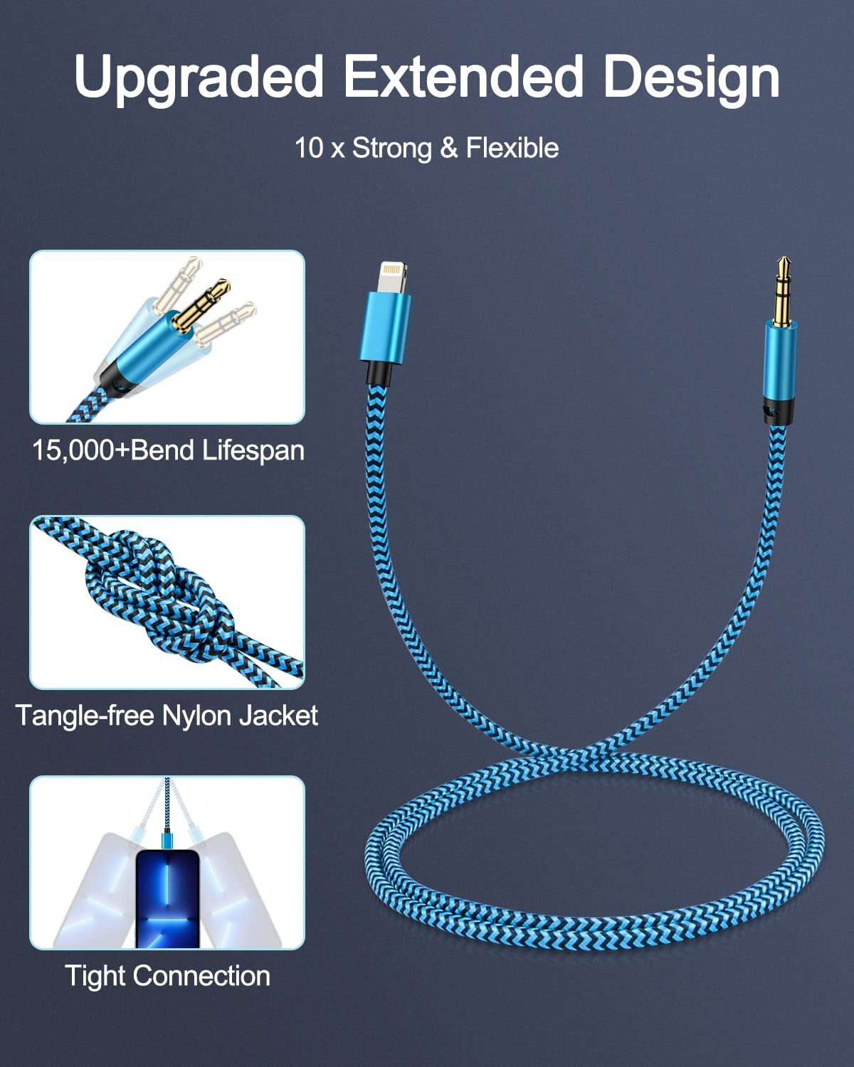 M/LIGHT-AUX-3FT - Aux Cord to iPhone 14 Pro Max, Lightning to 3.5mm Male Audio Cable Braided 3FT Auxiliar Ox Wire for Apple 14Pro 14 Plus 13 Pro Max 13 12 Mini X XR iPad iPod, iPhone Aux Chord for Car Speaker Headphone