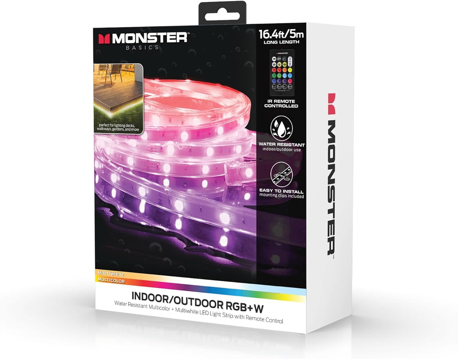 MLB7-1037-RGB - Monster Multi-Color Multi-White Indoor/Outdoor LED Light Strip with Included IR Remote, Color Changing Modes and Mounting Clips - 16.4ft(5m)