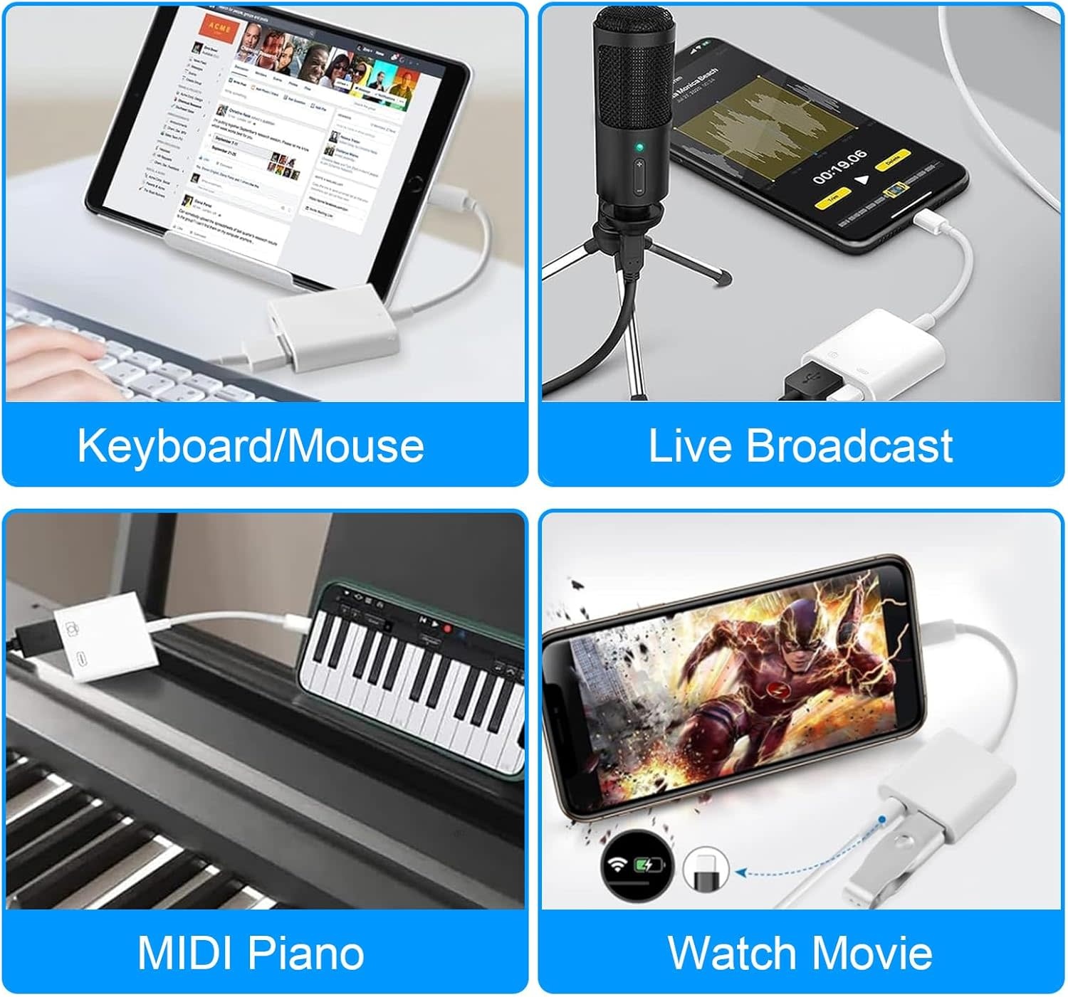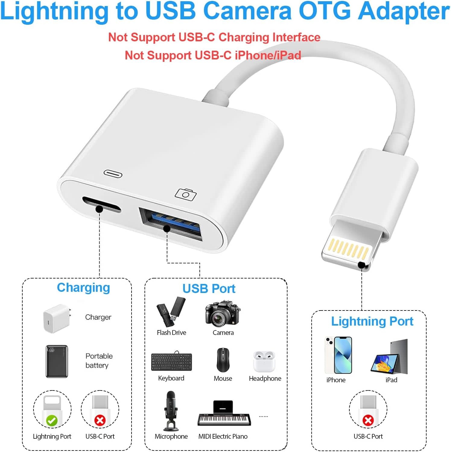 OTG2LIGHT+CHRG - Denlane Lightning to USB-A Camera Adapter, [Apple MFi Certified] USB 3.0 Female to iPhone iPad Adapter with Charging Port, Plug and Play OTG Converter Cable Support Card Reader Flash Drives Keyboard