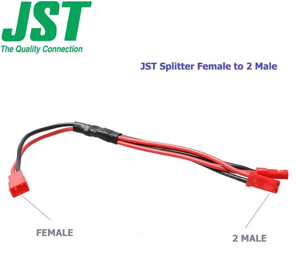 1/F-2/M-JST-Y - E-outstanding JST Plug Splitter JST 1 Female to 2 Male Connector Y Cable RCY Plug, Cable length: 10 cm/3.9 inches., Red and Black