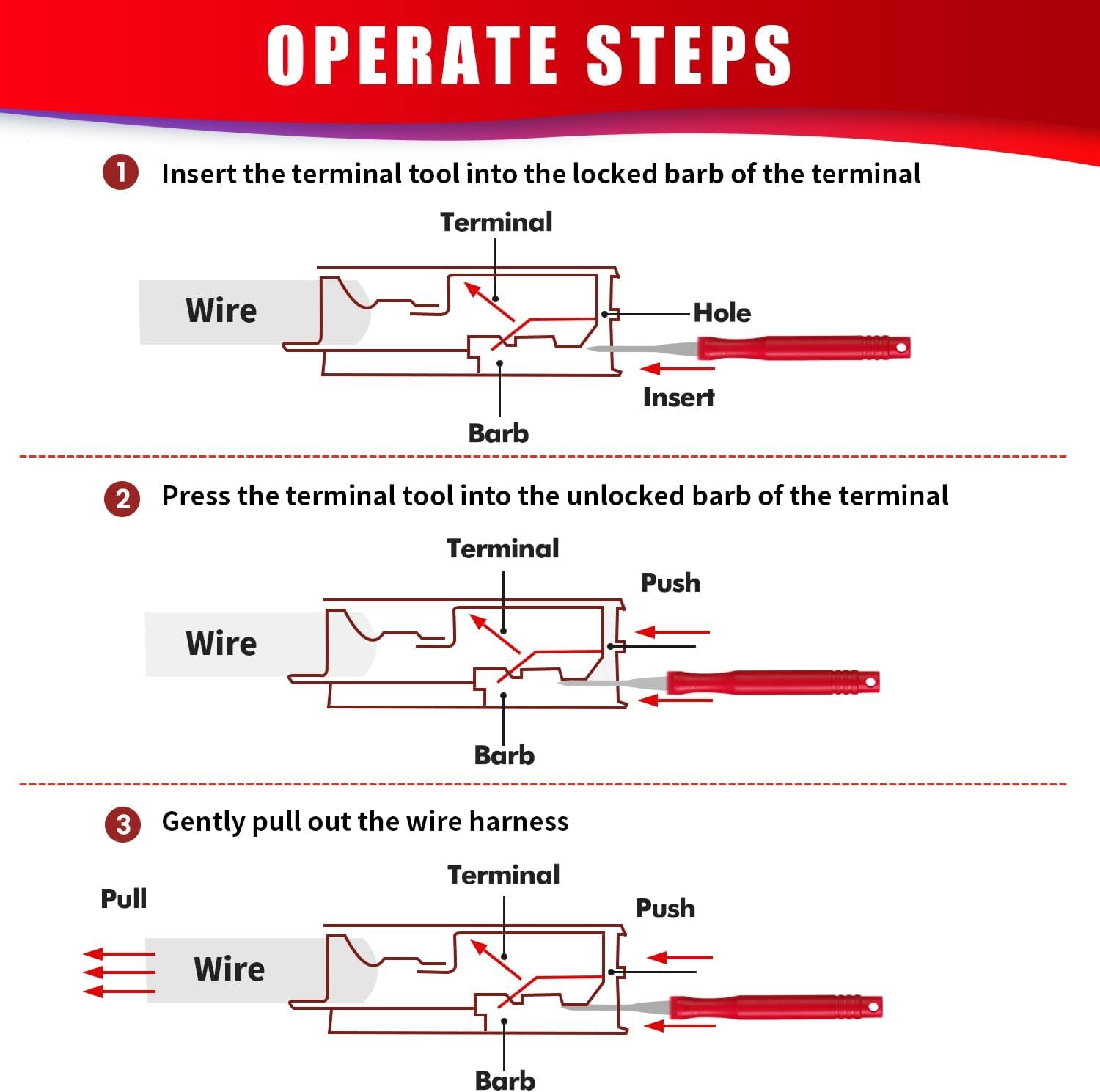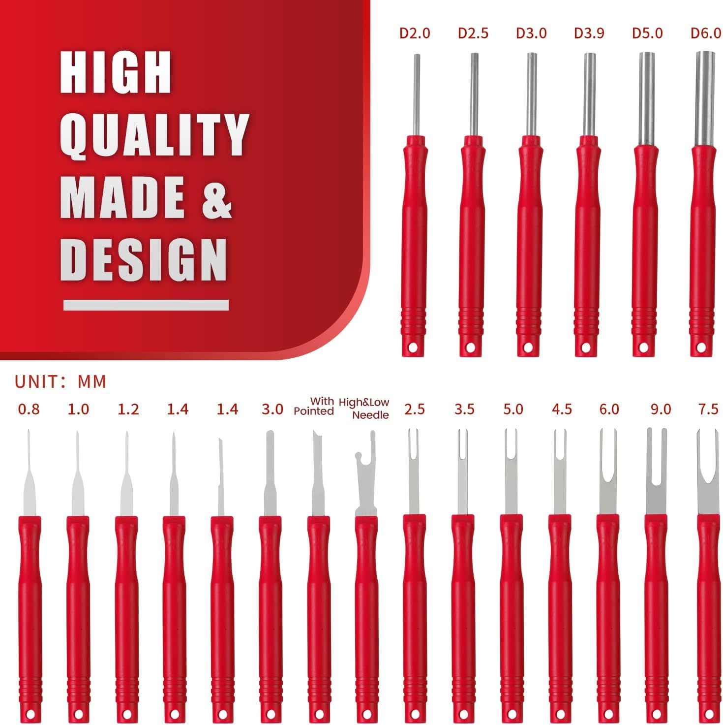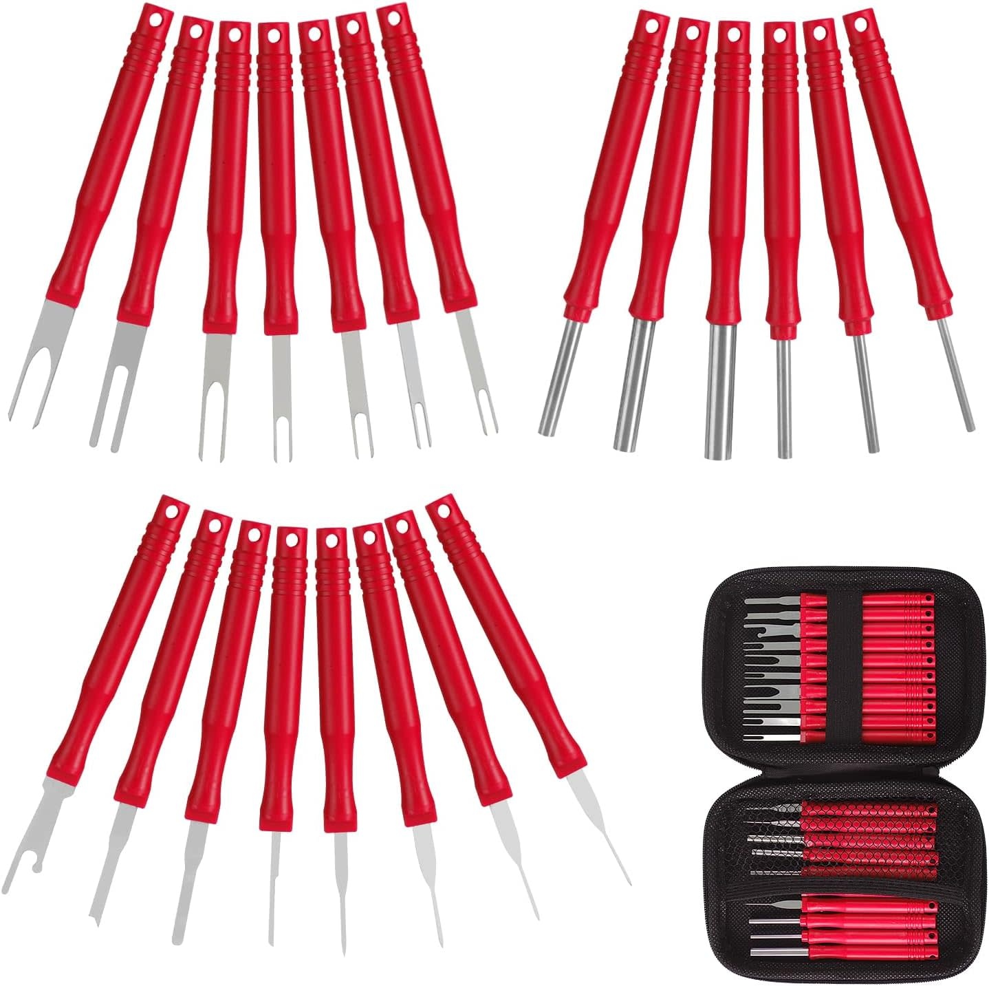 RED21 - XLWJBES Upgraded Terminal Removal Tool Kit, 21Pcs Red Electrical Pin Removal Tool Kit, Electrical Wire Connector Pin Release Tool, Automotive Terminal Release Kit for Household Devices - RadioShack of Bozeman