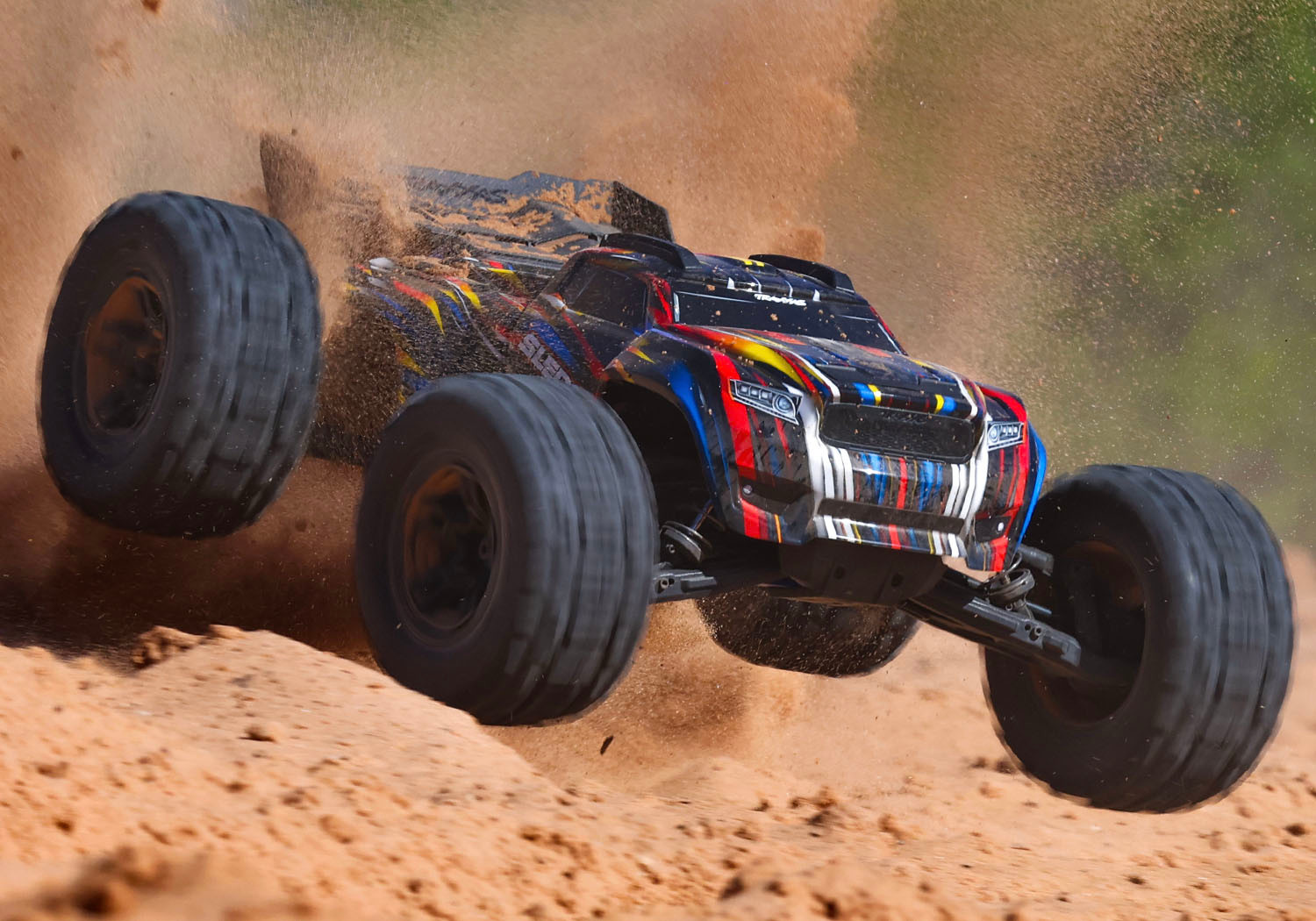 Sledge® 1/8 scale 4WD brushless monster truck. Fully assembled, Ready-To-Race®, with TQi™ 2.4GHz radio system, VXL-6s™ power system, belted Sledgehammer® tires, and ProGraphix® clipless body. - RadioShack of Bozeman