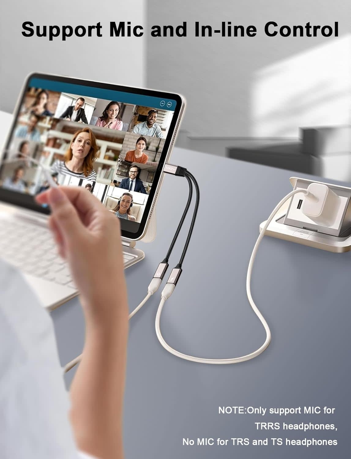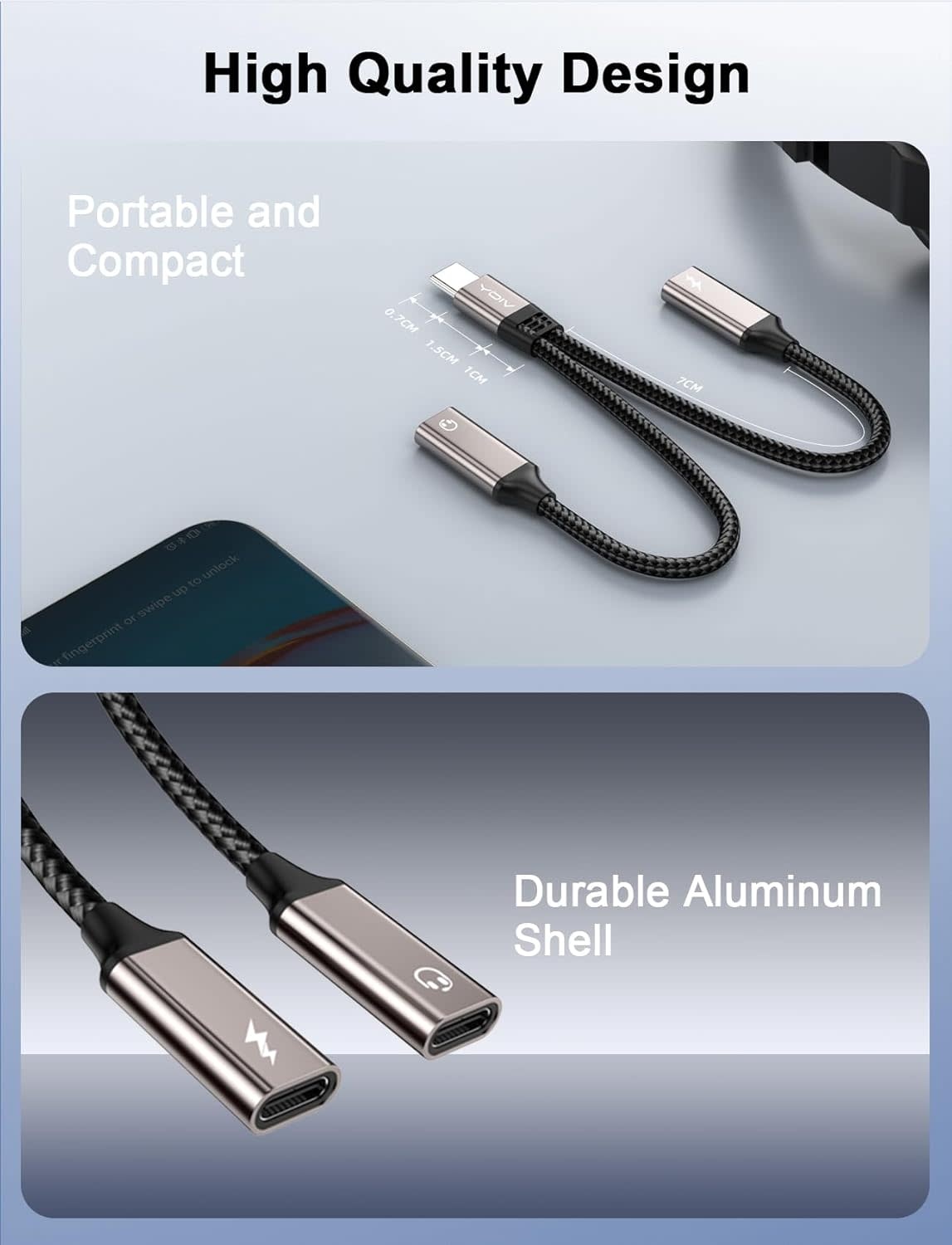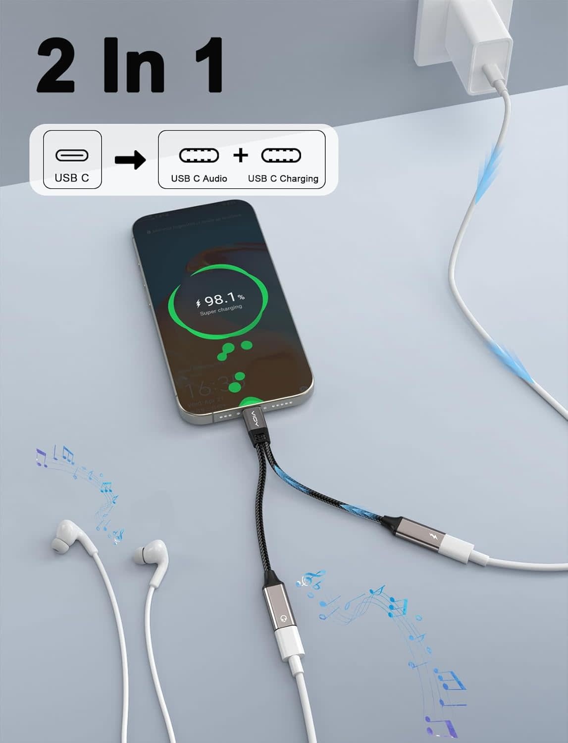 TC06 - VIOY USB-C Splitter 1 in 2 Out, Dual USB-C Headphone and Charger Adapter with PD 60W Fast Charging and Data Transfer for iPhone 16/15 Pro, iPad Pro, Samsung Galaxy S22 S21 S20, Pixel