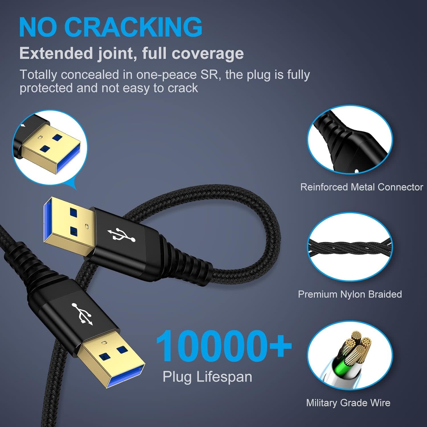 USB-A-USB-A-10ft - ANDHOT USB to USB Cable, 10 FT USB-A to USB-A Male to Male USBCable Double End USB3.0 Cable A to A Data Transfer Cord for Laptop Cooling Pad,Soundbar,Monitor,TV,KVM,DVD Player,Hard Drive Enclosures