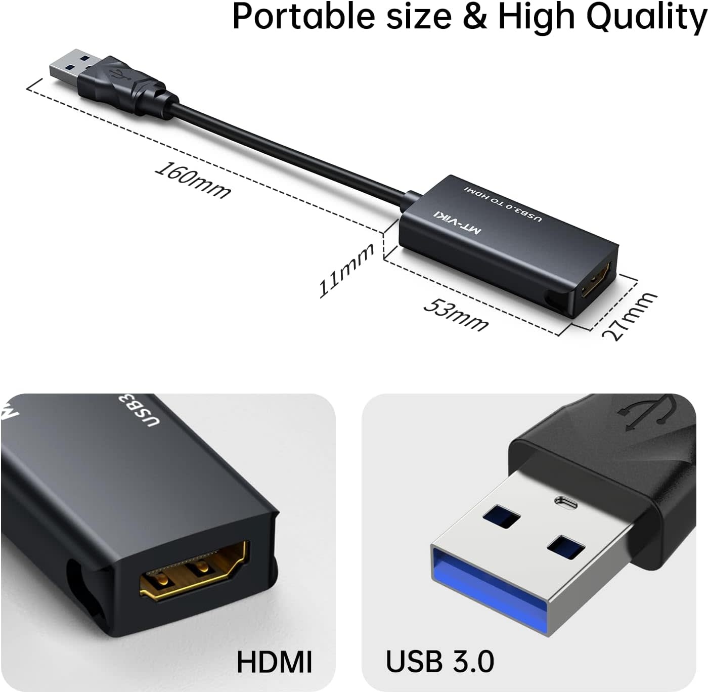 USB2HDMI - MT-VIKI USB 3.0 to HDMI Adapter, USB 3.0 to HDMI Male to Female Adapter, 1080P Compatible with Mac OS, Windows 10/8.1/8/7 (Uni-Directional) 1 Pack